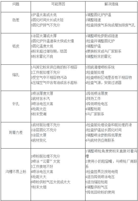 粉末涂料噴涂中常見(jiàn)問(wèn)題及解決措施